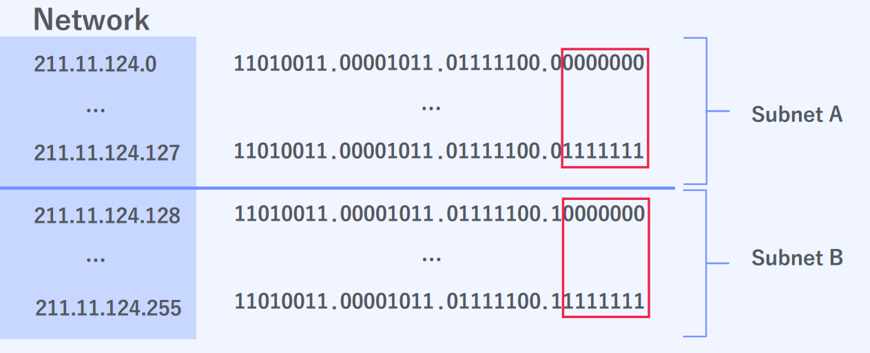 서브넷 A - 211.11.124.0/25